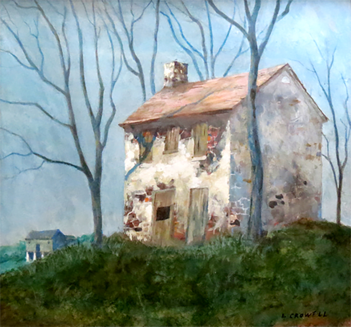 Lucius Crowell was first drawn to the area as a student at the Pennsylvania Academy of the Fine Arts Country School in Yellow Springs. After World War II, he returned to live in a 19th century fieldstone farm house adding a modern glass wing that offered a sweeping view of Charlestown Valley.