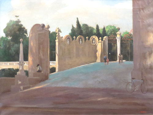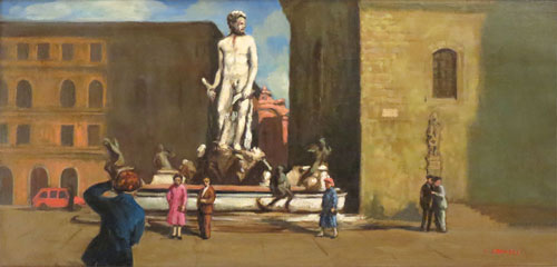Living in Rome with his family in 1955-56 in an apartment above the Palazzo Pamphili and overlooking the Piazza Navona, he had the opportunity to explore the rich light and color of the Mediterranean sun. His works seem to capture timeless moments suspended in silence.