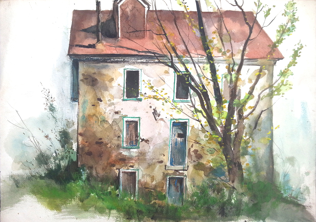 The spontaneity of watercolors intrigued Crowell and he took an approach to this medium that was both studied and casual.
